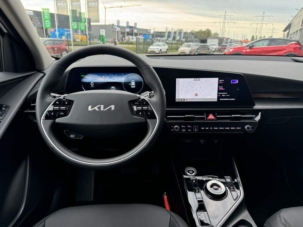 Dankzij de geavanceerde rijstrooksensor met correctie houdt de Kia Niro EV DynamicPlusLine 64.8 kWh uit 2024 je veilig binnen de lijnen van de weg, waardoor je ontspannen en zelfverzekerd kunt rijden. De dimlichten schakelen automatisch in wanneer dit nodig is, wat zorgt voor een optimale verlichting van de weg voor je.