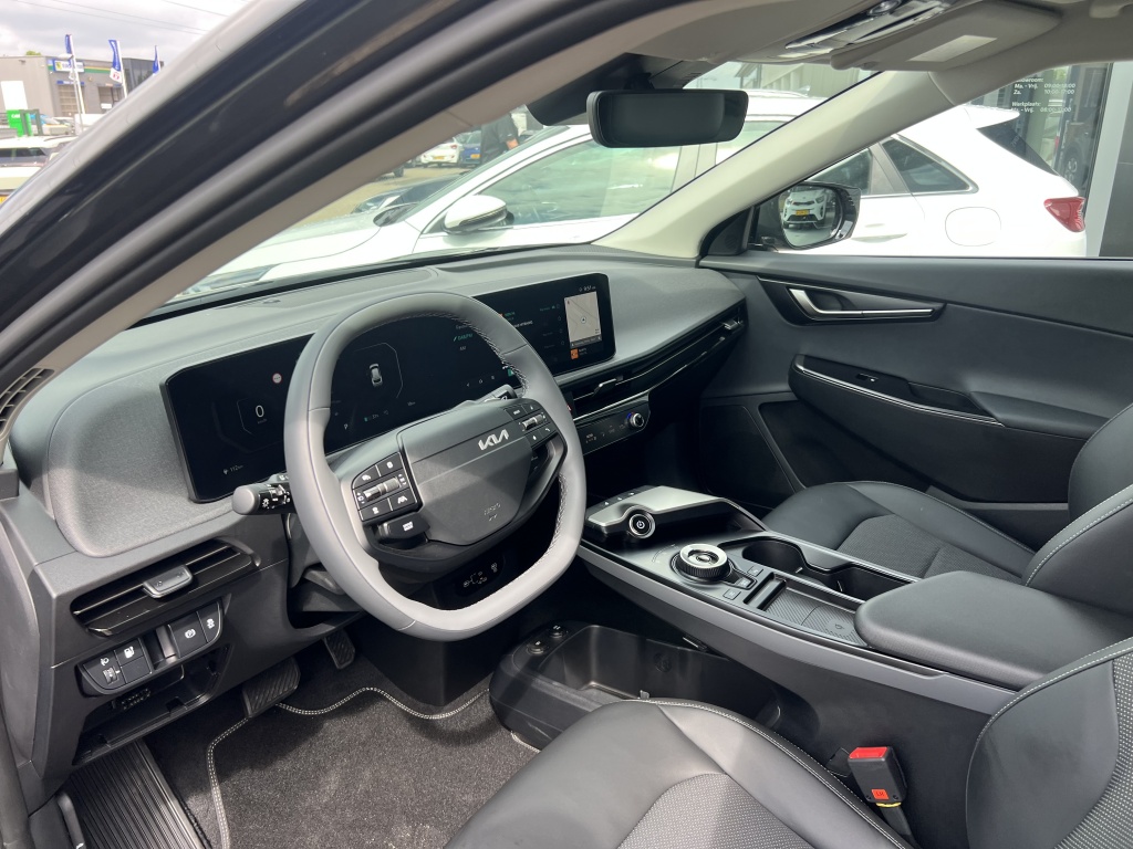 Het stuur van de Kia EV6 Light Edition 63 kWh is bekleed met hoogwaardig kunstleder, wat zorgt voor een comfortabele grip en een luxe uitstraling. Het standaard multimedia scherm biedt een intuïtieve bediening van diverse functies, waardoor u altijd verbonden en geïnformeerd blijft tijdens het rijden.