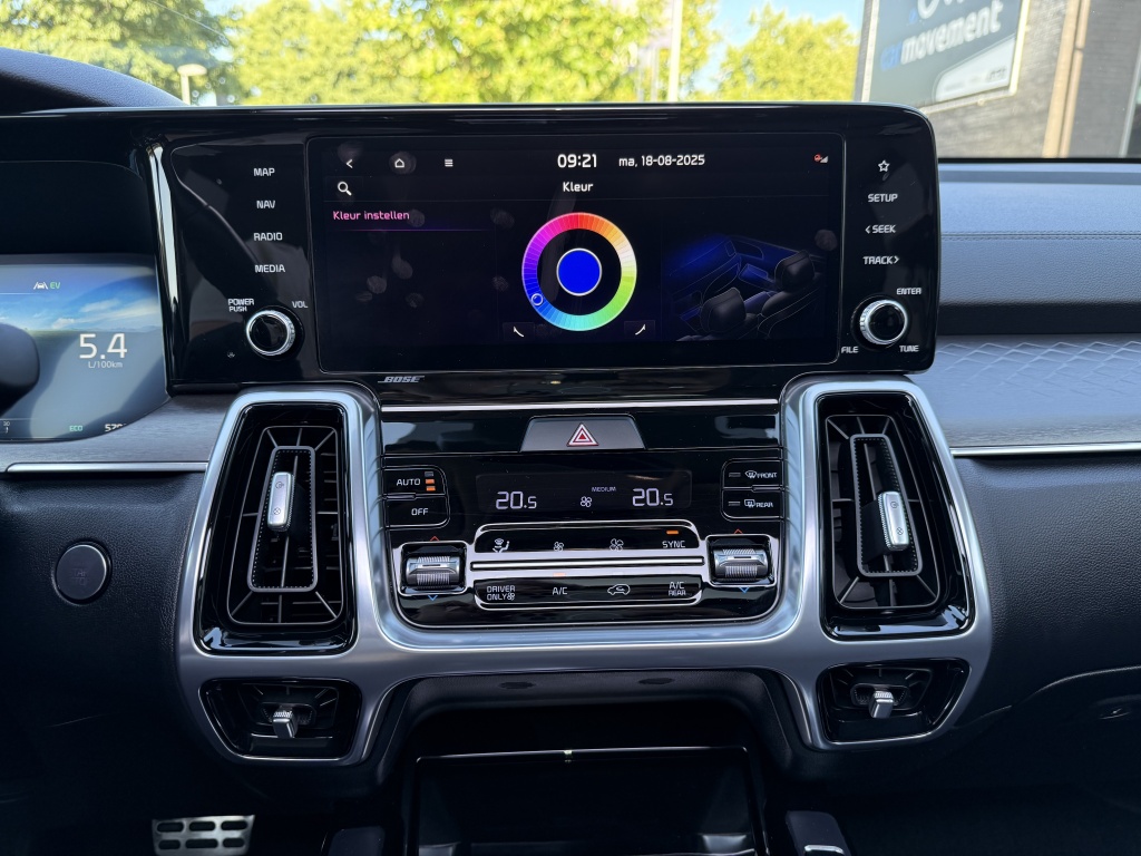 In het interieur van de Kia Sorento vindt u verwarmde voorstoelen en ventilatie, waardoor u altijd comfortabel zit, ongeacht het weer buiten. Het stuur is ook verwarmd, ideaal voor koude winterdagen. Het volledig digitale instrumentenpaneel geeft u alle nodige informatie duidelijk weer, zodat u altijd op de hoogte bent van de prestaties van de auto.
