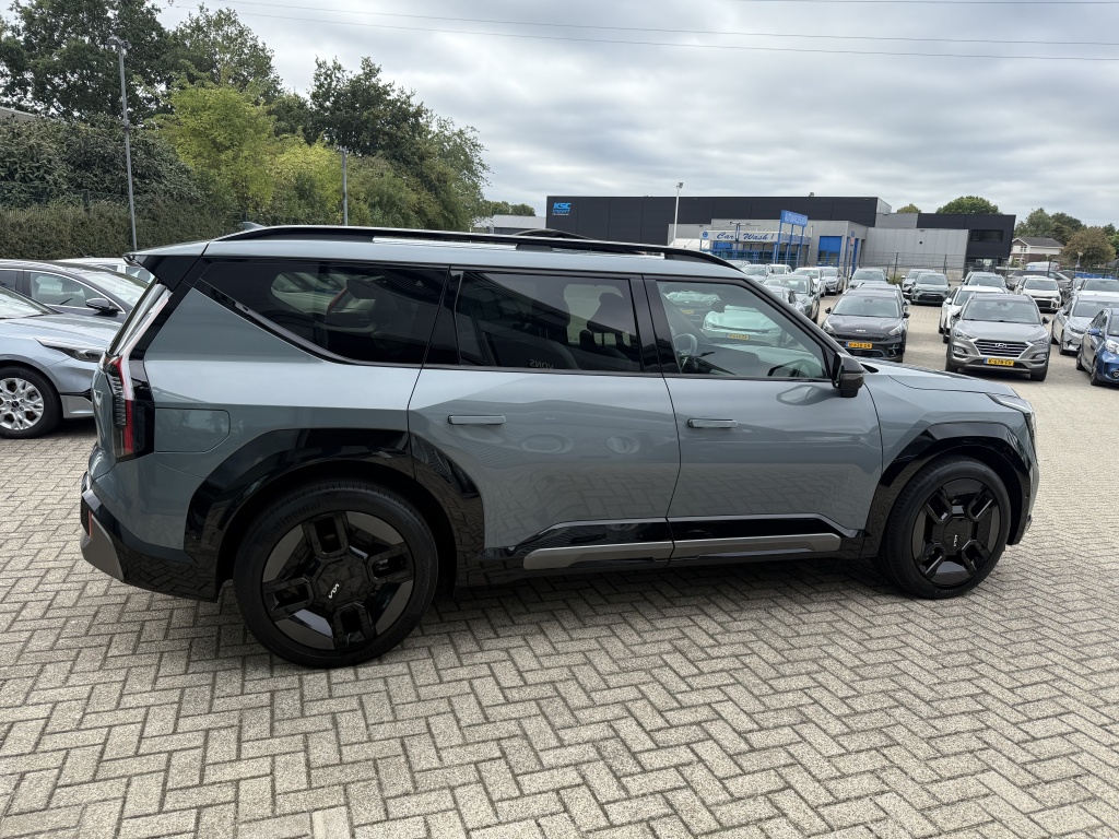 De metallic lak geeft deze Kia EV9 een luxe uitstraling en zorgt ervoor dat de auto er als nieuw uitziet. Met vijf deuren is instappen en uitstappen voor alle passagiers eenvoudig en efficiënt.