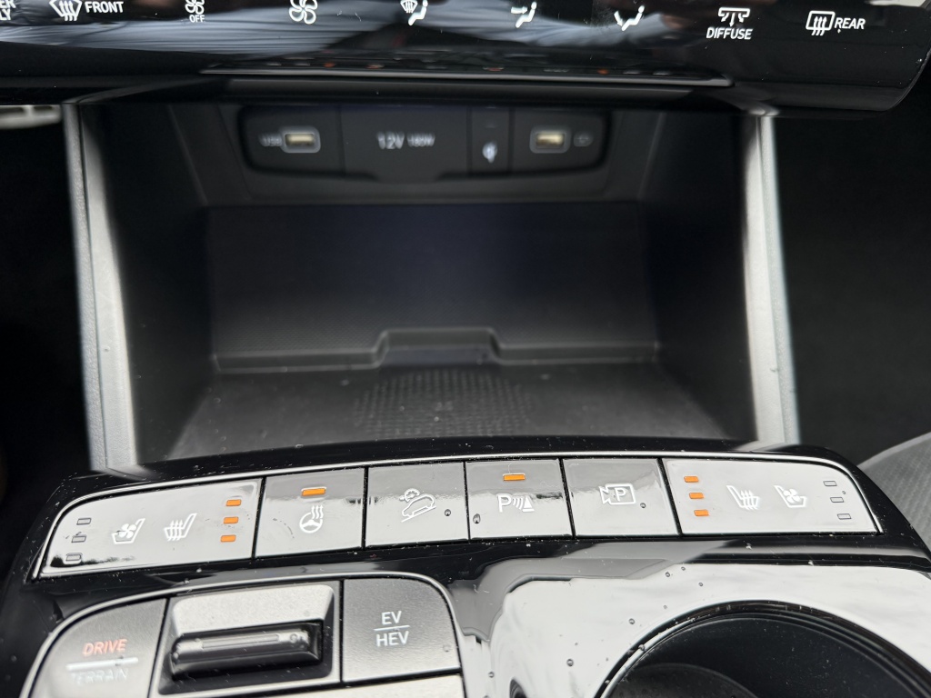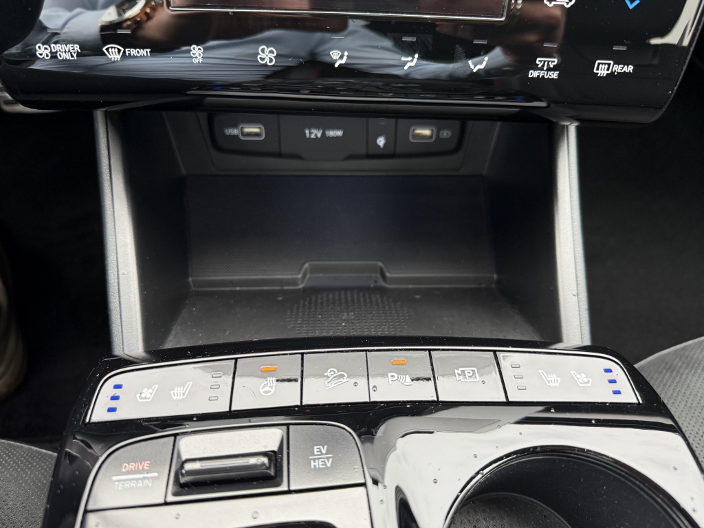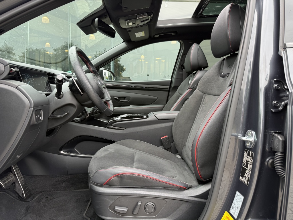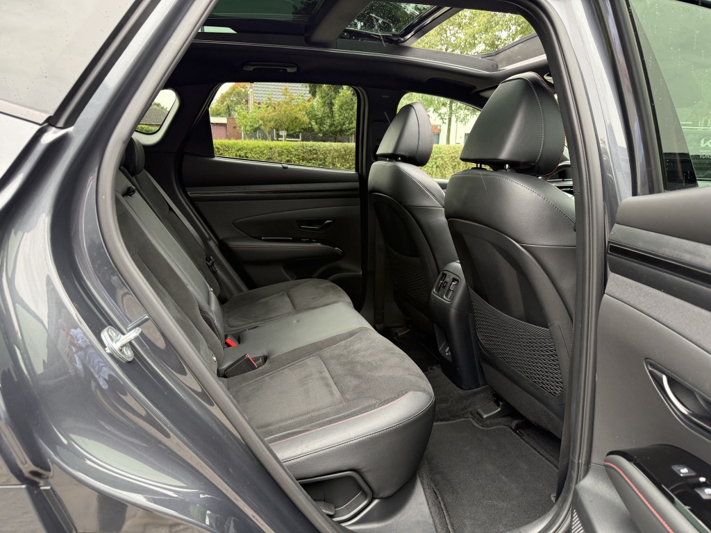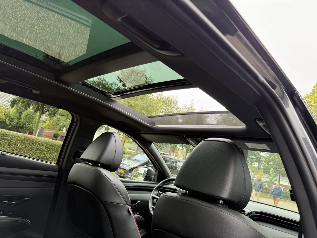Het interieur van deze Hyundai Tucson is eveneens van alle gemakken voorzien. Met een elektrisch verstelbare bestuurdersstoel en verwarmde voorstoelen geniet je van optimaal comfort tijdens je rit. Het elektrisch glazen panorama-dak zorgt voor een ruimtelijk gevoel en laat je volop van natuurlijk licht genieten. De stoelventilatie voor en verwarmde achterbank bieden het hele jaar door comfort voor jou en je passagiers.