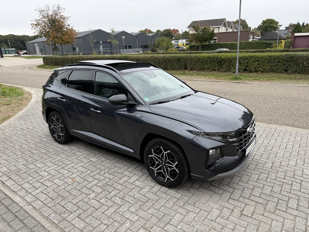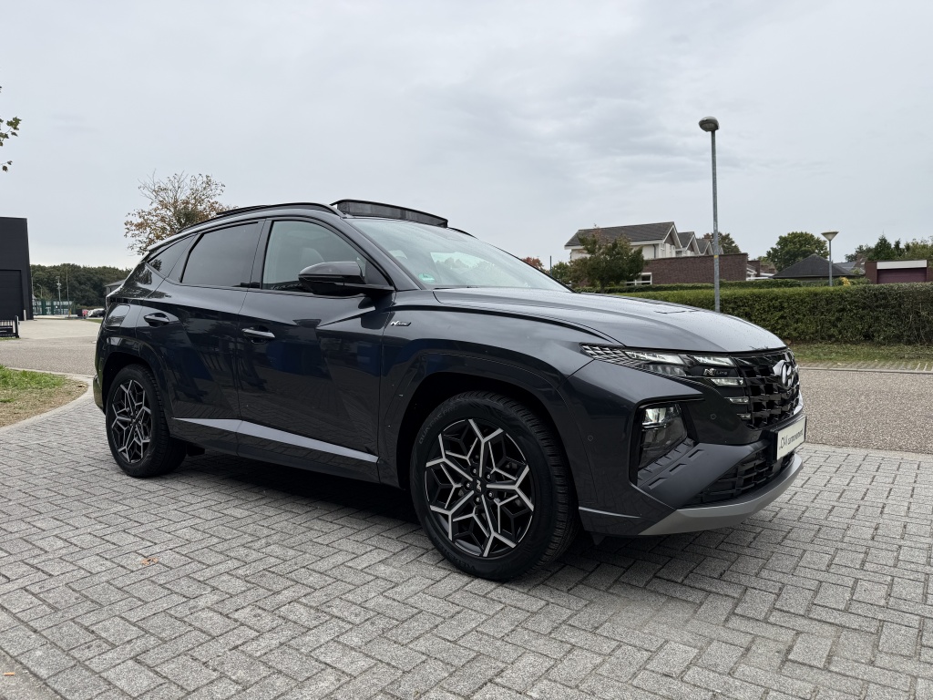 Bij Carmovement B.V. hebben we een prachtige Hyundai Tucson 1.6 T-GDi 265PK PHEV N-Line Sky beschikbaar, met slechts één vorige eigenaar. Deze stoere hybride benzine SUV uit 2022 is uitgevoerd in een stijlvolle grijze kleur, en met zijn krachtige 265 PK motor ben je verzekerd van een indrukwekkende rijervaring.