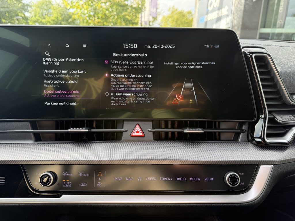 De Kia Sportage beschikt over een aantal handige opties die het rijden nog aangenamer maken. Zo is de auto uitgerust met een achteruitrijcamera, waardoor parkeren en manoeuvreren een fluitje van een cent worden. Daarnaast zorgen de adaptieve cruise control functie en de Stop&Go en stuurhulp ervoor dat u ontspannen kunt rijden, terwijl het volledig digitale instrumentenpaneel u alle benodigde informatie geeft tijdens het rijden.