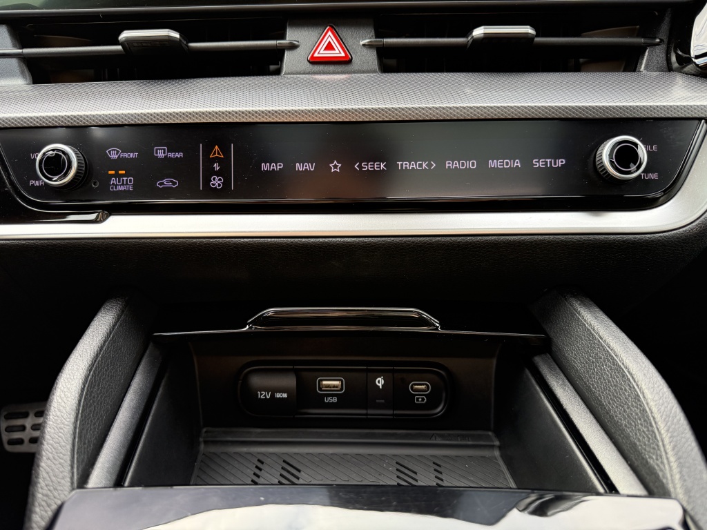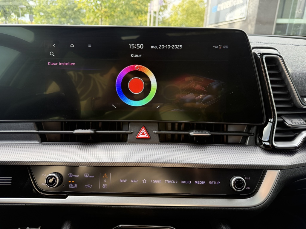 Voor extra comfort zijn de voorstoelen verwarmd en is het stuur zelfs verwarmd, ideaal voor de koudere dagen. Het elektrisch glazen panorama-dak zorgt voor een lichte en ruime sfeer in het interieur, terwijl de sfeerverlichting zorgt voor een gezellige ambiance in de auto. Met de lichtmetalen velgen van 18" en de matrix LED koplampen ziet de Kia Sportage er niet alleen sportief uit, maar biedt ook nog eens uitstekend zicht op de weg.