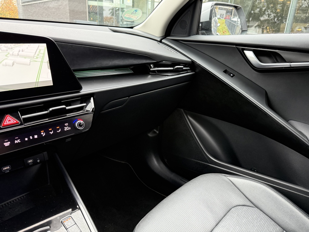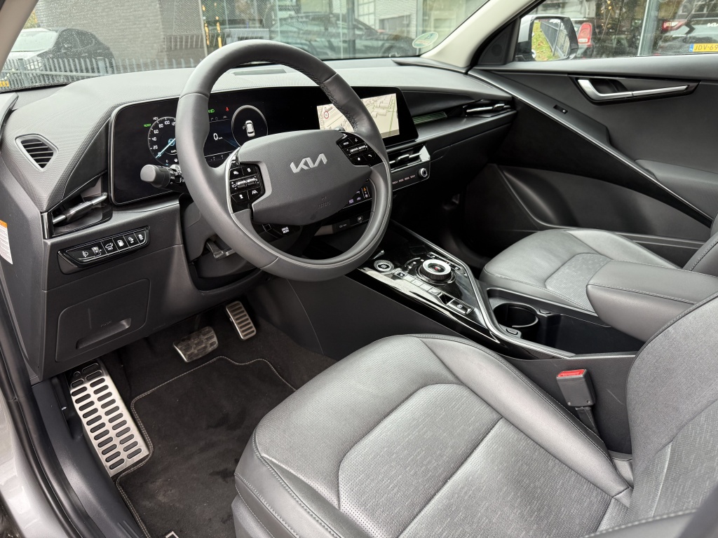 Het interieur van de Kia Niro is voorzien van luxe voorzieningen zoals een draadloze telefoonlader, elektrisch bedienbare achterklep met sensorsturing en keyless start. Geniet van extra comfort tijdens het rijden met de verwarmde voorstoelen en het verwarmde stuur. De LED koplampen zorgen voor helder zicht, zelfs in de donkerste nachten, terwijl de lichtmetalen velgen van 18" bijdragen aan de sportieve uitstraling van deze SUV.