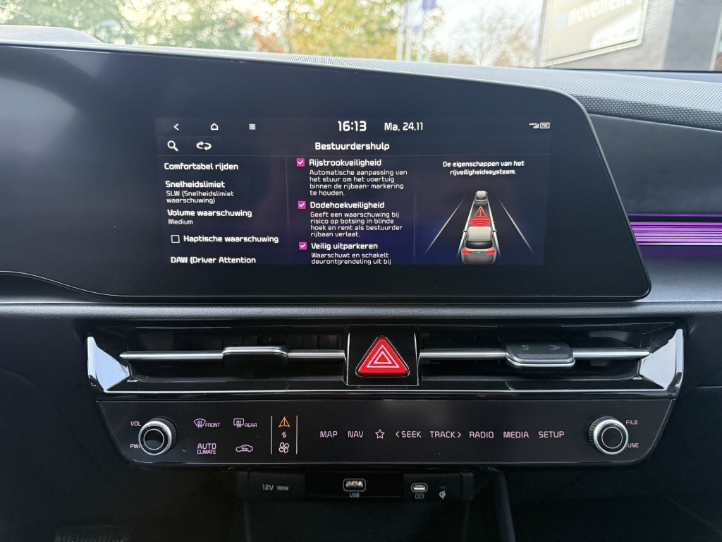 Veiligheid staat voorop in de Kia Niro, met dodehoekdetectie en correctie die u waarschuwt voor voertuigen in uw dode hoek en indien nodig ingrijpt om een botsing te voorkomen. De LED koplampen zorgen voor een heldere en goed zichtbare verlichting, wat vooral handig is tijdens nachtelijke ritten of bij slechte weersomstandigheden.