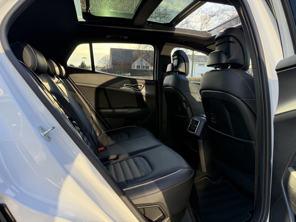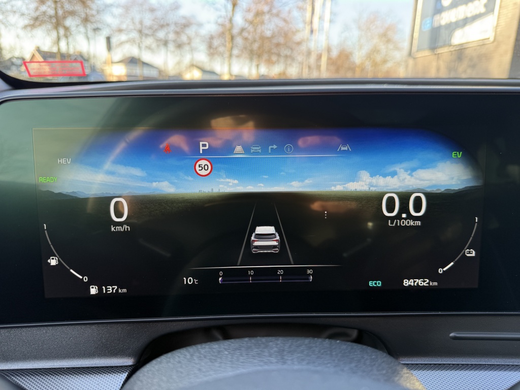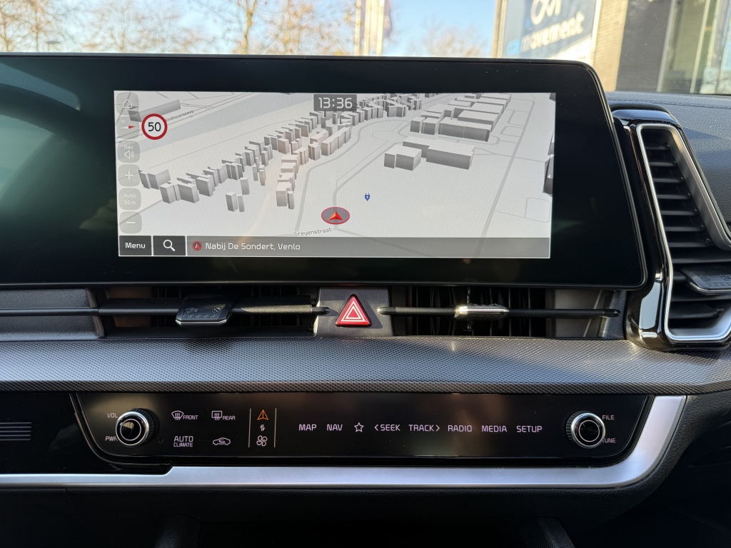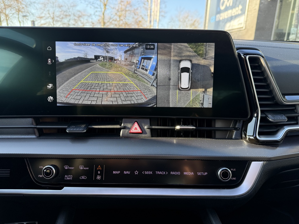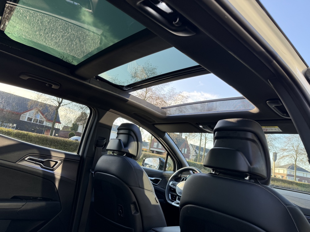 Het interieur van de Kia Sportage is voorzien van luxe extra's, zoals een elektrisch glazen panorama-dak dat zorgt voor een licht en ruim gevoel in de auto. Met de stuurverwarming en de verwarmde voorstoelen en achterbank blijf je warm en comfortabel, zelfs op koude dagen. Het volledig digitale instrumentenpaneel geeft je alle informatie die je nodig hebt in één oogopslag, terwijl de rondomzicht camera zorgt voor extra veiligheid bij inparkeren en manoeuvreren.