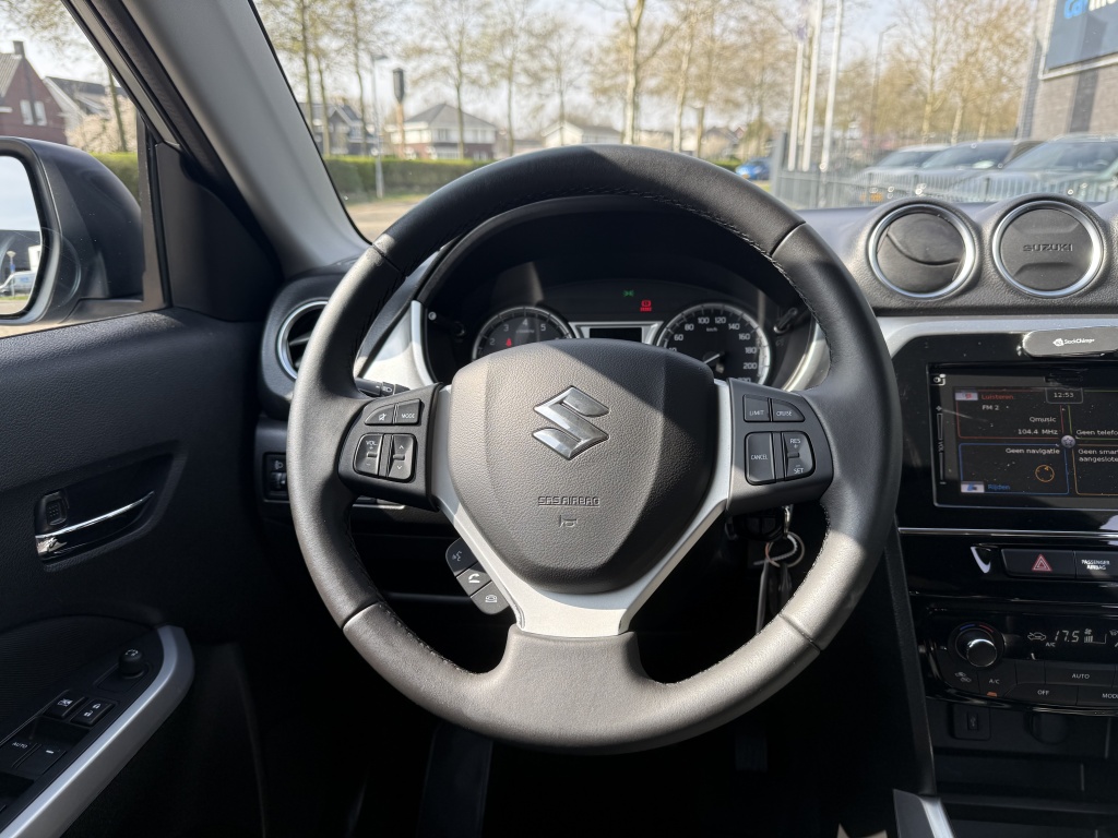 Het interieur van de Suzuki Vitara is afgewerkt met hoogwaardige materialen, waaronder een stuur bekleed met leder. Dit geeft niet alleen een luxe uitstraling, maar zorgt er ook voor dat het stuur stevig in de hand ligt en comfortabel aanvoelt tijdens het rijden.