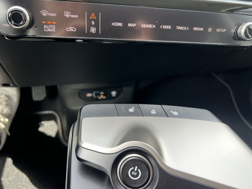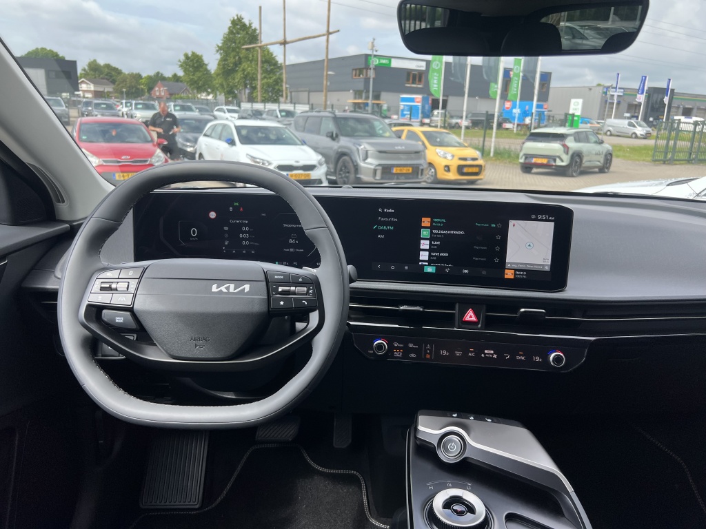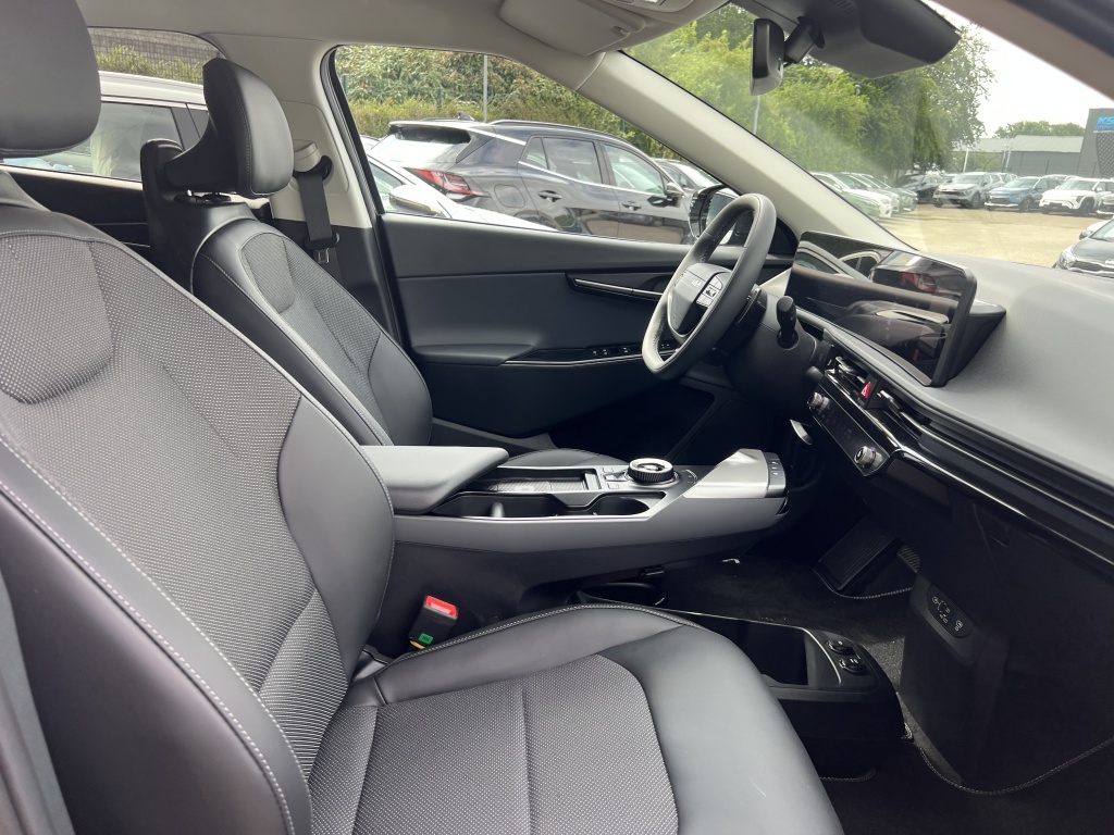 Het stuur van de Kia EV6 Light Edition 63 kWh is bekleed met hoogwaardig kunstleder, wat zorgt voor een comfortabele grip en een luxe uitstraling. Het standaard multimedia scherm biedt een intuïtieve bediening van diverse functies, waardoor u altijd verbonden en geïnformeerd blijft tijdens het rijden.