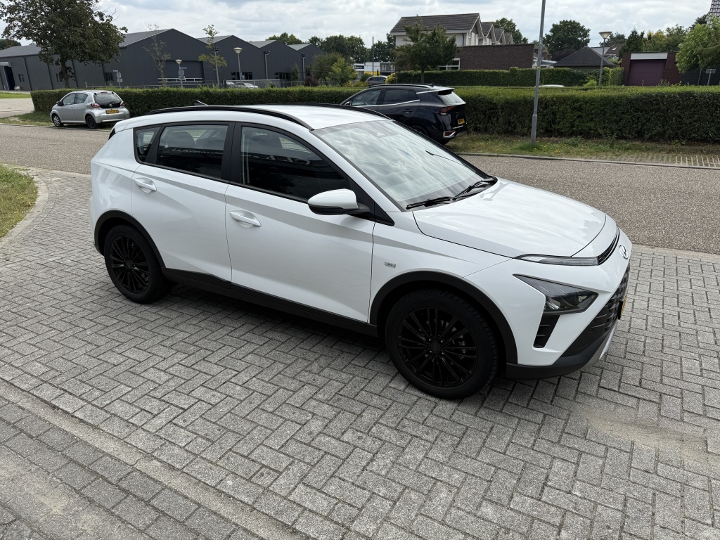 De carrosserie van deze witte Hyundai Bayon is niet alleen stijlvol, maar ook uiterst praktisch met vijf deuren waardoor instappen en uitstappen moeiteloos verloopt. En met de metallic lak springt deze auto echt in het oog, waar je ook heen rijdt.