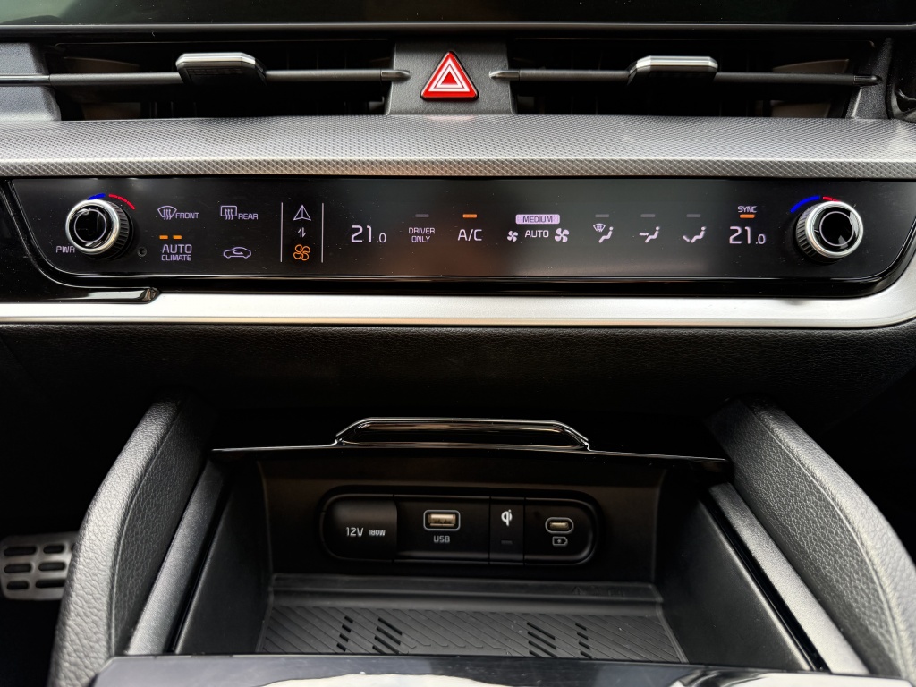 Voor extra comfort zijn de voorstoelen verwarmd en is het stuur zelfs verwarmd, ideaal voor de koudere dagen. Het elektrisch glazen panorama-dak zorgt voor een lichte en ruime sfeer in het interieur, terwijl de sfeerverlichting zorgt voor een gezellige ambiance in de auto. Met de lichtmetalen velgen van 18" en de matrix LED koplampen ziet de Kia Sportage er niet alleen sportief uit, maar biedt ook nog eens uitstekend zicht op de weg.