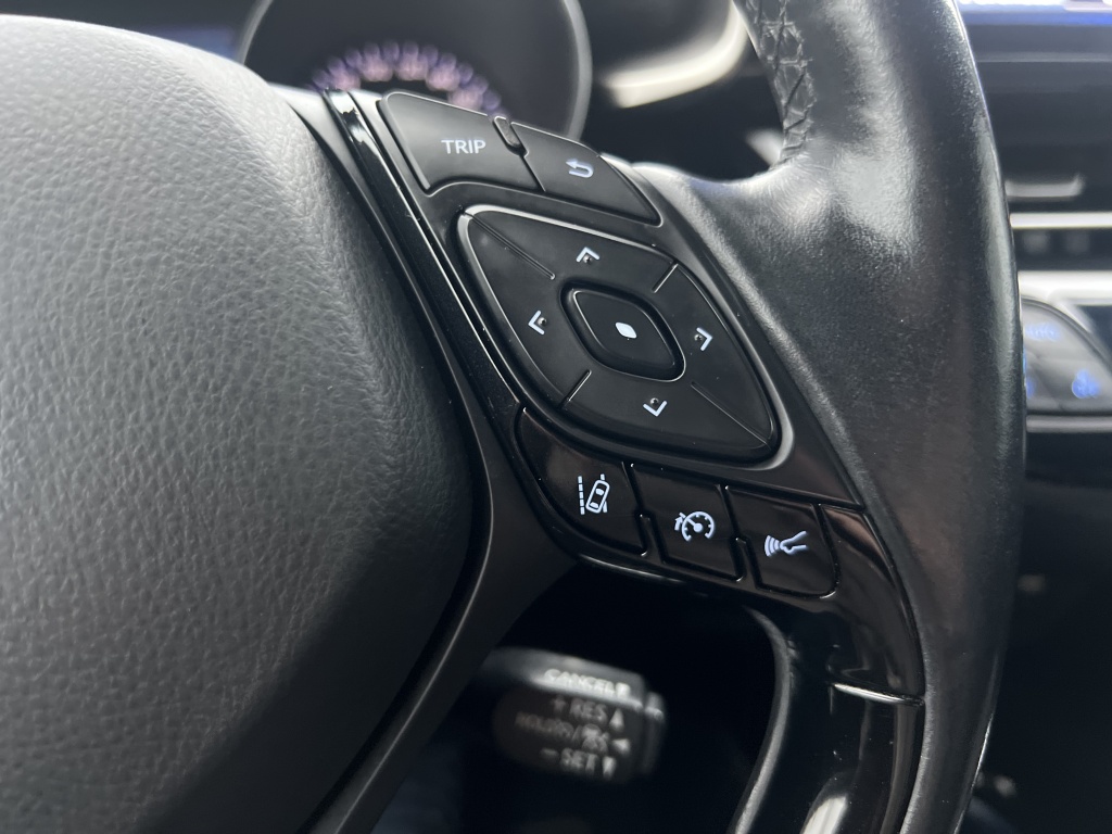 Een handige feature van deze auto is de achteruitrijcamera, waardoor parkeren en achteruit rijden een stuk gemakkelijker wordt. Daarnaast heeft de Toyota C-HR dimlichten die automatisch aan gaan, wat zorgt voor een verbeterde zichtbaarheid en veiligheid bij slechte lichtomstandigheden.