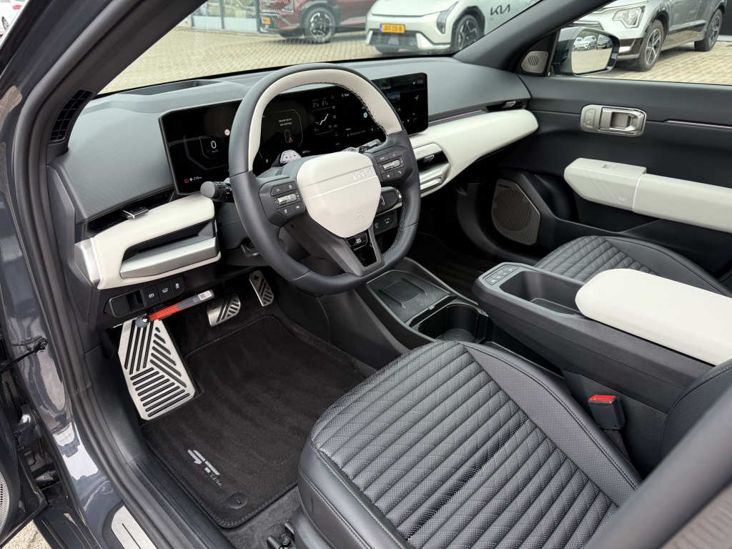 Het interieur van de Kia EV4 GT-PlusLine 81.4 kWh straalt luxe uit, met een elektrisch verstelbare passagiersstoel die zorgt voor optimaal comfort tijdens lange ritten. Het elektrisch glazen schuif-/kanteldak creëert een lichte en luchtige sfeer in de auto, waardoor elke rit nog aangenamer wordt.