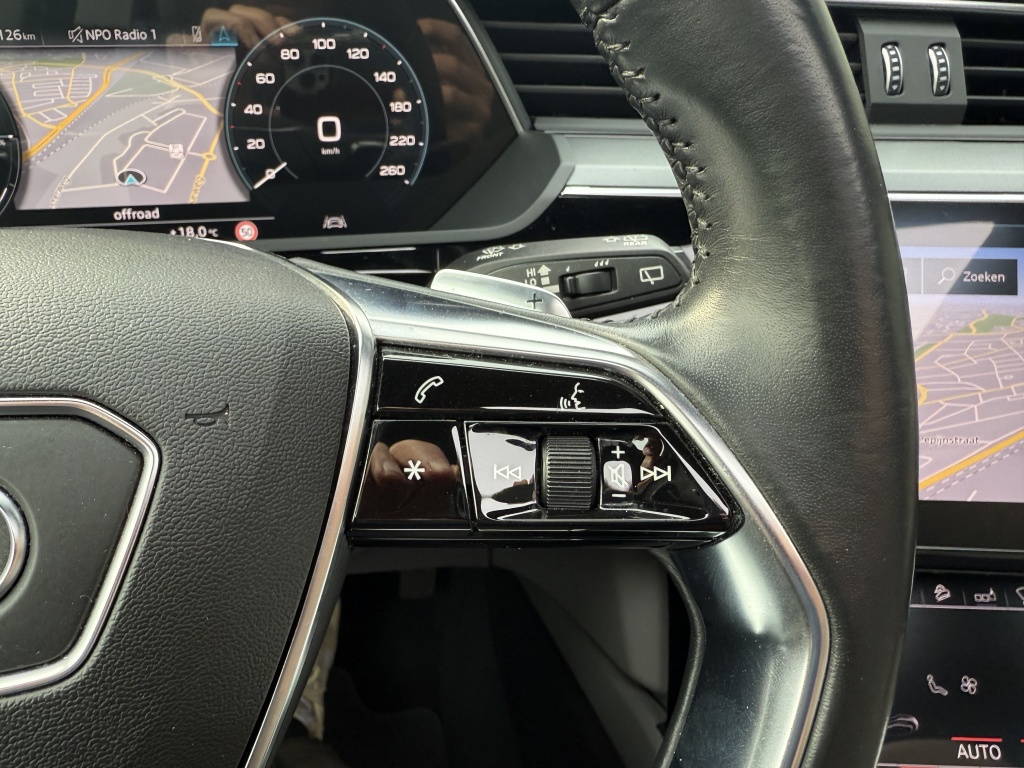 Deze Audi e-tron is voorzien van diverse luxe opties die het rijden niet alleen comfortabeler maken, maar ook veiliger. Neem bijvoorbeeld de cruise control, waarmee u moeiteloos lange afstanden kunt afleggen zonder constant het gaspedaal in te hoeven drukken. Daarnaast zorgen de LED koplampen voor optimaal zicht, zowel overdag als 's nachts.