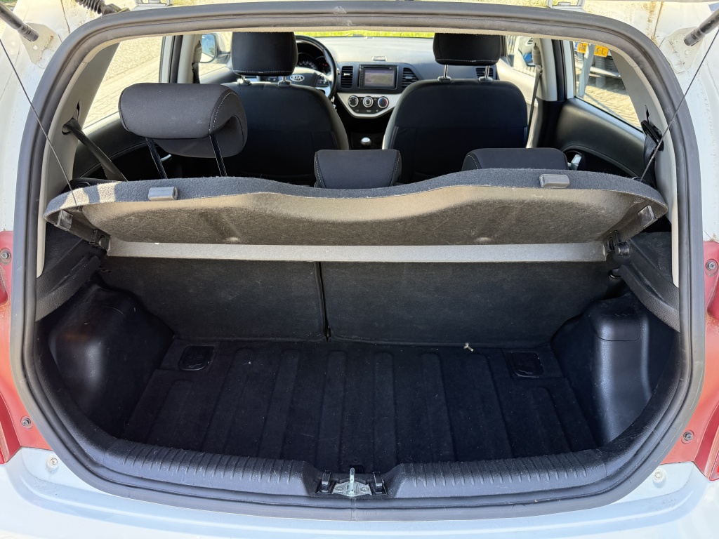 De witte kleur van deze Kia Picanto geeft hem een frisse en moderne uitstraling, perfect passend bij zijn compacte formaat. Dankzij zijn hatchback carrosserie en vijf deuren is deze auto zeer praktisch en veelzijdig in gebruik.